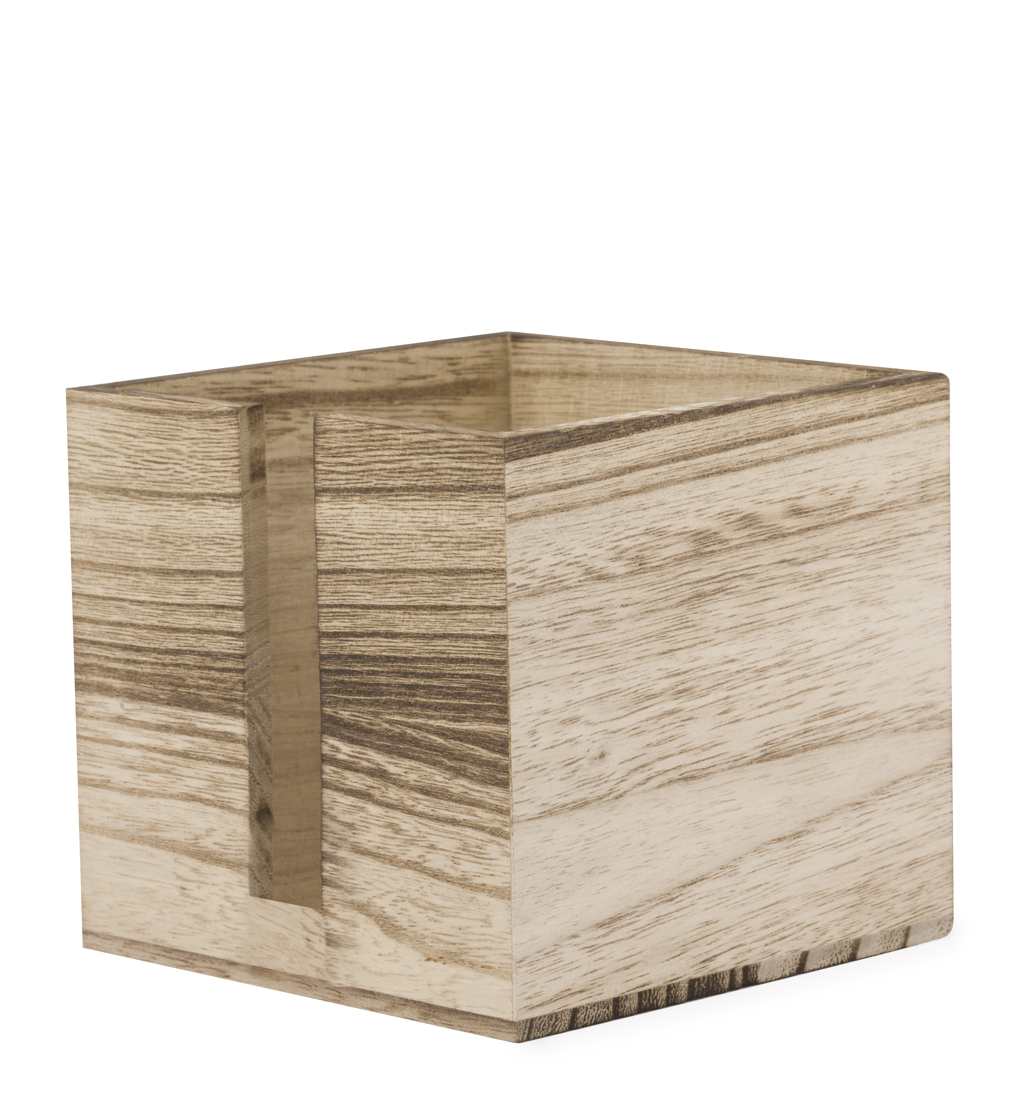 Práctico servilletero fabricado en madera. De diseño industrial, fabricado en suave madera natural con ranura en un lateral para poder coger las servillas con facilidad. Presentado en caja de diseño kraft.