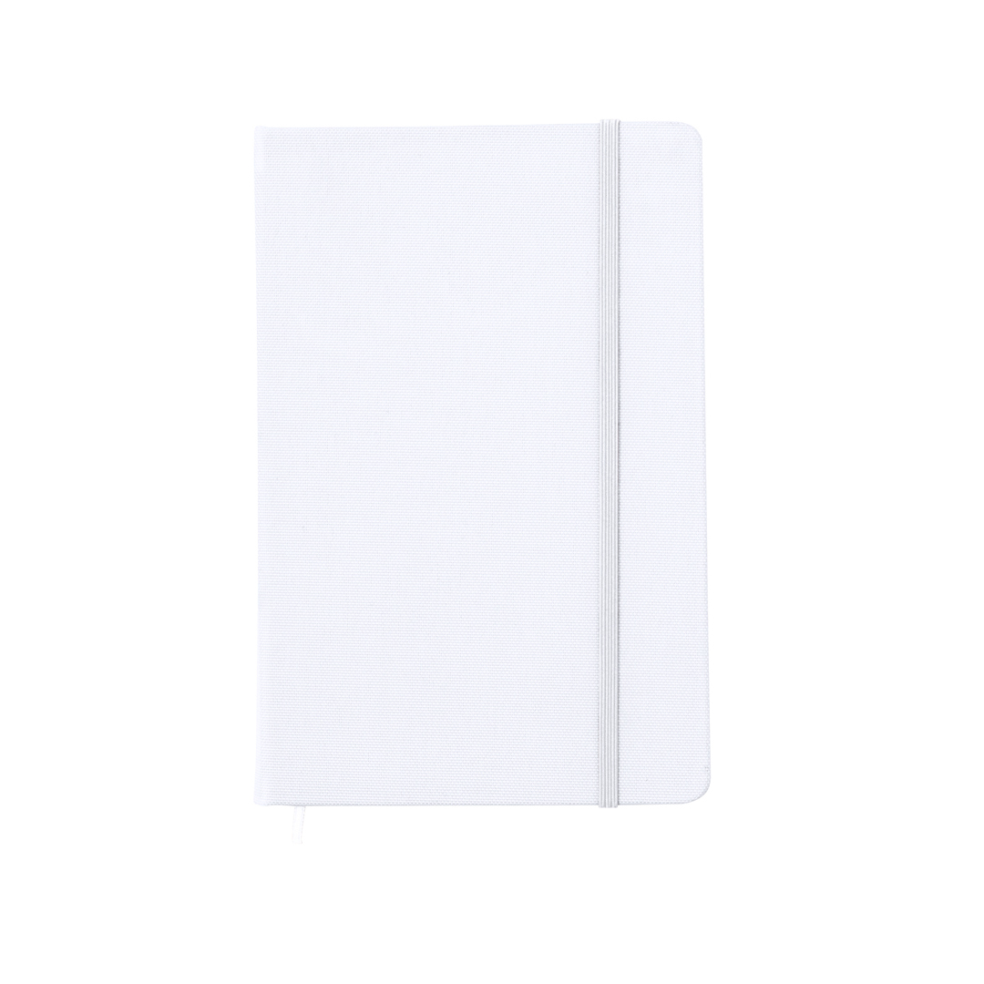 Bloc de notas con tapas rígidas elaboradas con RPET 600D. Con portada y contraportada en blanco, de 100 páginas en lisas, con banda elástica y marcapáginas en variados y vivos colores. Especialmente diseñado para marcaje a todo en sublimación. Con logotipo RPET en contraportada. Presentado en bolsa individual. El material RPET se elabora a partir de plástico reciclado, para así fomentar la reutilización de residuos plásticos y ayudar a la sostenibilidad del planeta.