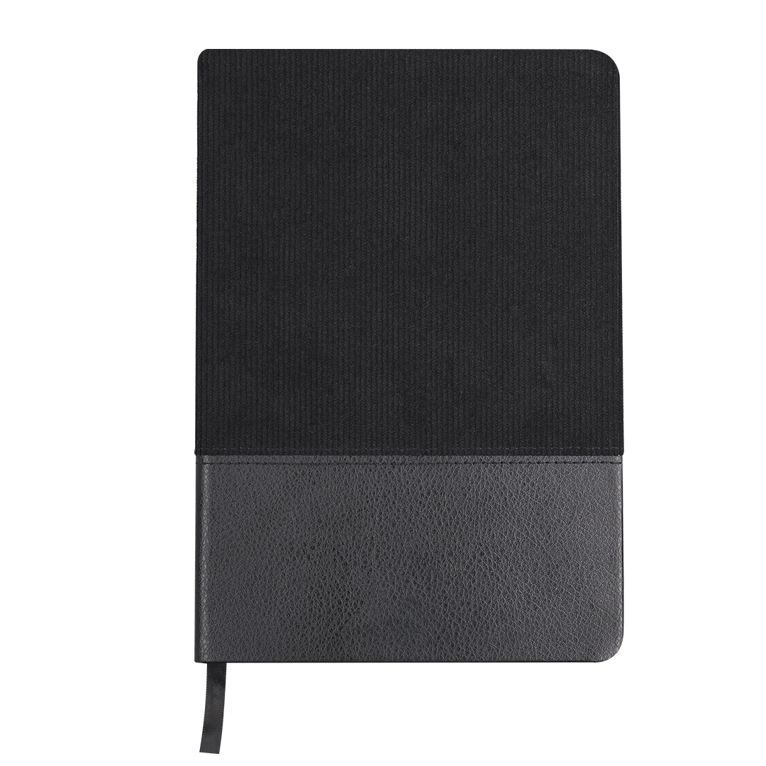 Bloc de notas A5 en suave pana de poliéster y PU Reciclado. Incluye con 80 hojas en color crema, de disposición a una raya y con marcapáginas a juego. Logotipo PU Reciclada en contraportada. La PU Reciclada destaca por su resistencia y elasticidad. Este material reciclado y reciclable es una opción sostenible que rescata las fibras desechadas en los procesos de fabricación, minimizando así el desperdicio de material y contribuyendo a su vez a reducir el impacto ambiental, manteniendo a la vez sus propiedades originales.