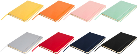Mantén tus ideas organizadas.Libreta. Tapa de cartón de 300g recubierta en poliuretano de diferentes colores. Interior de 80 hojas rayadas en papel obra crema de 70g. Encuadernación cosido. Incluye cinta señaladora del color de la tapa. Cierre con banda elástica del mismo color.Medidas: 14 x 21 x 1,5 cm. Materiales: Papel, Cartón, Poliuretano.