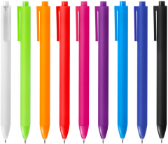 Escribe con estiloBolígrafo retráctil con tinta gel. Cuerpo de diferentes colores con acabado mate suave al tacto. Pulsador y puntera del mismo color del cuerpo acabado brillante. Clip translúcido del mismo color del cuerpo. Medidas: 1 x 14 cm. Materiales: Plástico ABS. Peso: 5,7 g. Tinta gel: negra