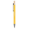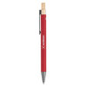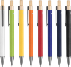 Elegancia y sostenibilidad. Bolígrafo retráctil. Cuerpo metálico en diferentes colores acabado mate. Clip metálico y puntera plástica color gris acabado mate. Pulsador de bambú.Medidas: 14 cm. Materiales: Aluminio reciclado y bambú. Peso: 17 g. Tinta: negra.