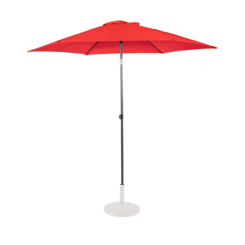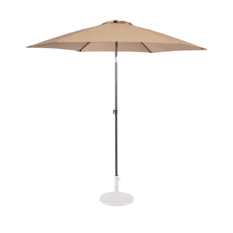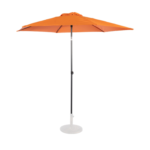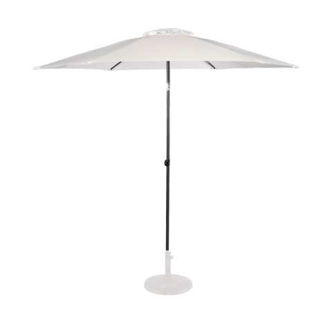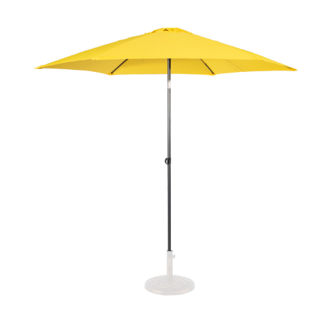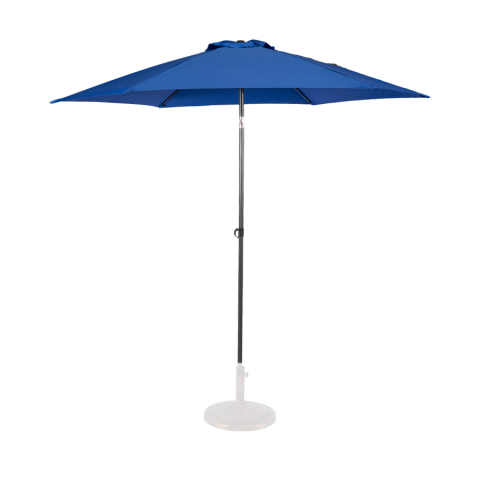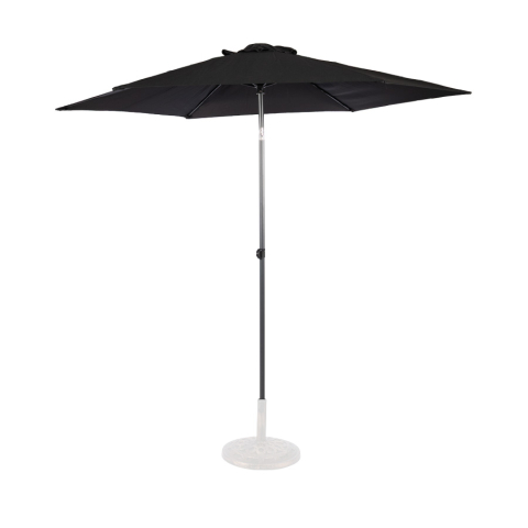 Cotizar variantesQuitasol redondo de 2.5m de diámetro, con 6 cascos de lona Poliéster UV impermeable de 160g. Estructura asta central de 3.2cm diámetro x 1.6mm de espesor + 6 varas de 6x10mm, ambos Acero con pintura electrostática color negro, altura 2.3m, con sencillo sistema de apertura manual. Incluye codo giratorio de 45°. NO INCLUYE BASE.