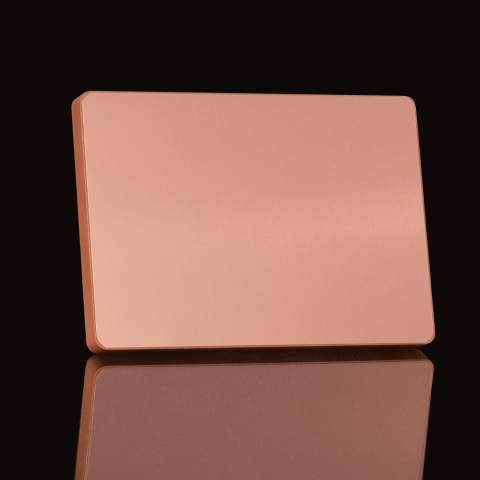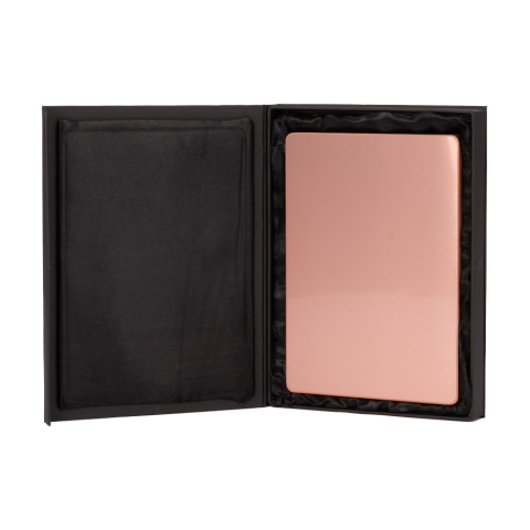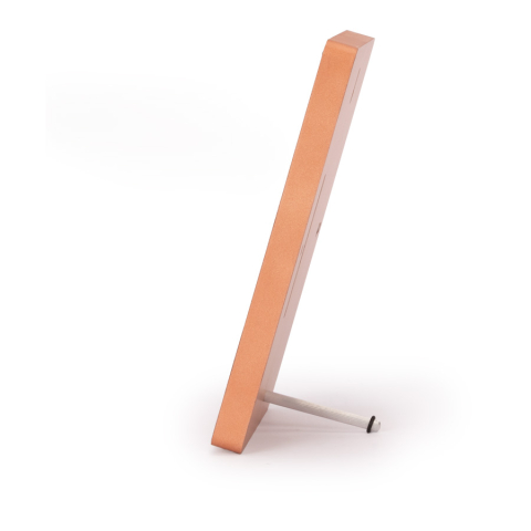 Cotizar variantesPlaca metálica color cobre, montada sobre base rectangular de madera enchapada con esquinas redondeadas. En su parte posterior, incluye orificios y soporte metálico para exhibición vertical u horizontal. Presentación en caja de cartón forrado negro con cierre imantado, interior acolchado de espuma y tela poliéster satinado negro, con troquel. OJO: la placa metálica viene con film plástico removible, para protección de la misma.