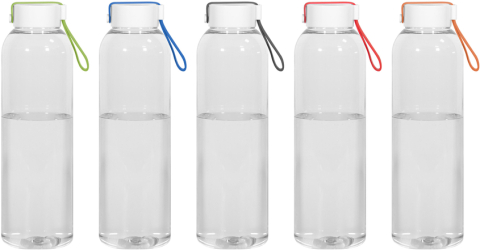 Botella de plástico transparente con tapa a rosca plástica. Medidas: Ø 6,5 x 21,5 cm. (sin tapa) y Ø 6,5 x 22,5 cm. (con tapa) Capacidad: 600 ml. Peso: 61 g. (botella) y 23 g. (tapa) Materiales: Plastico PET, polipropileno y silicona... ATENCIÓN Botella y tapa se arman en nuestra bodega. Para pedidos hasta 500 unidades, se deben considerar 24 horas adicionales a los plazos habituales. Por cantidades mayores a 500 unidades, por favor consultar a su ejecutiva para acordar los plazos de entrega. Los pedidos procesados en nuestro taller de impresión ya incluirán el armado. / No utilizar con bebidas gaseosas ni líquidos calientes. / El manejo de este producto es delicado. / No exponer al sol y temperaturas altas por tiempo prolongado.