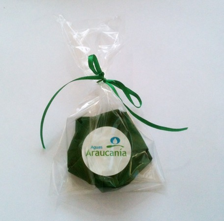 stock, con etiqueta adhesiva impresión color, presentado en bolsa de celofán, con cinta de satín.