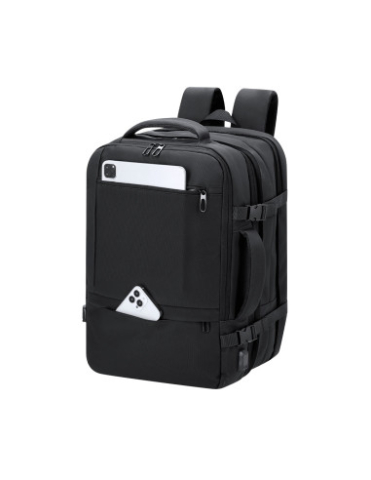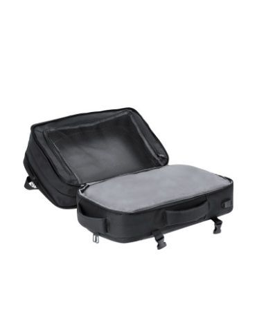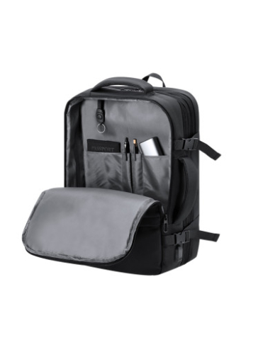 Cotizar variantesMochila multifunción extensible confeccionada en resistente PU.Cuenta con una excelente transpirabilidad en la zona trasera y en la cinta para los hombros, facilitando la disipación del calor gracias a sus cintas y respaldo acolchados. Las cintas anchas están diseñadas para aliviar la presión en los hombros, permitiendo llevar la mochila cómodamente durante largos periodos.Perfecta para cualquier situación por tener múltiples compartimentos:2 bolsillos frontales de diferentes tamaños.1 bolsillo trasero antirrobo para mayor seguridad.3 compartimentos grandes centrales con doble tirador, uno de ellos portatodo, un bolsillo central de gran capacidad para guardar ropa y/o complementos con organizador en su interior, y otro perfecto para llevar portátil de hasta 17 pulgadas.Incluye cinta para fijarla en trolley y maletas. Ajuste de cierre en el pecho.Bolsillo en cinta izquierda para hombros, ideal para guardar llaves u objetos de pequeño tamaño. Además, cuenta con un puerto de carga USB y con correa pectoral con hebilla para un ajuste seguro. Perfecta para viajes o para el día a día por sus cintas ajustables, adaptándose a todo estilo de vida. Extensible. Conexión USB. Bolsillo Acolchado para Portátil. Parte Trasera y Cintas Acolchadas
