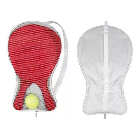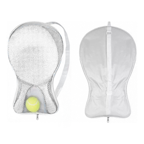Incluye pelota de tenis y estuche de poliéster blanco para transportar.