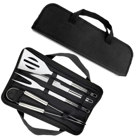 Cotizar variantesSet parrillero BBQ que incluye espátula, cuchillo parrillero, pinzas y tenazas.