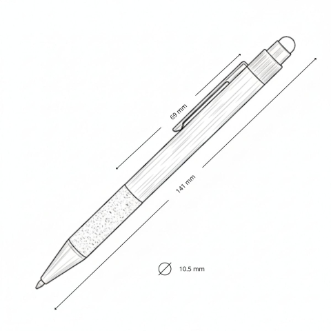 Cotizar variantesCombina diseño moderno con una historia de impacto positivo. Fabricado con aluminio reciclado y grip de corcho natural de origen responsable, este bolígrafo refleja una opción consciente para quienes valoran el diseño y el planeta. Mecanismo de pulsador, detalles cromados y punta touch gris completan un artículo personalizable ideal para marcas que escriben el futuro con coherencia y estilo.
