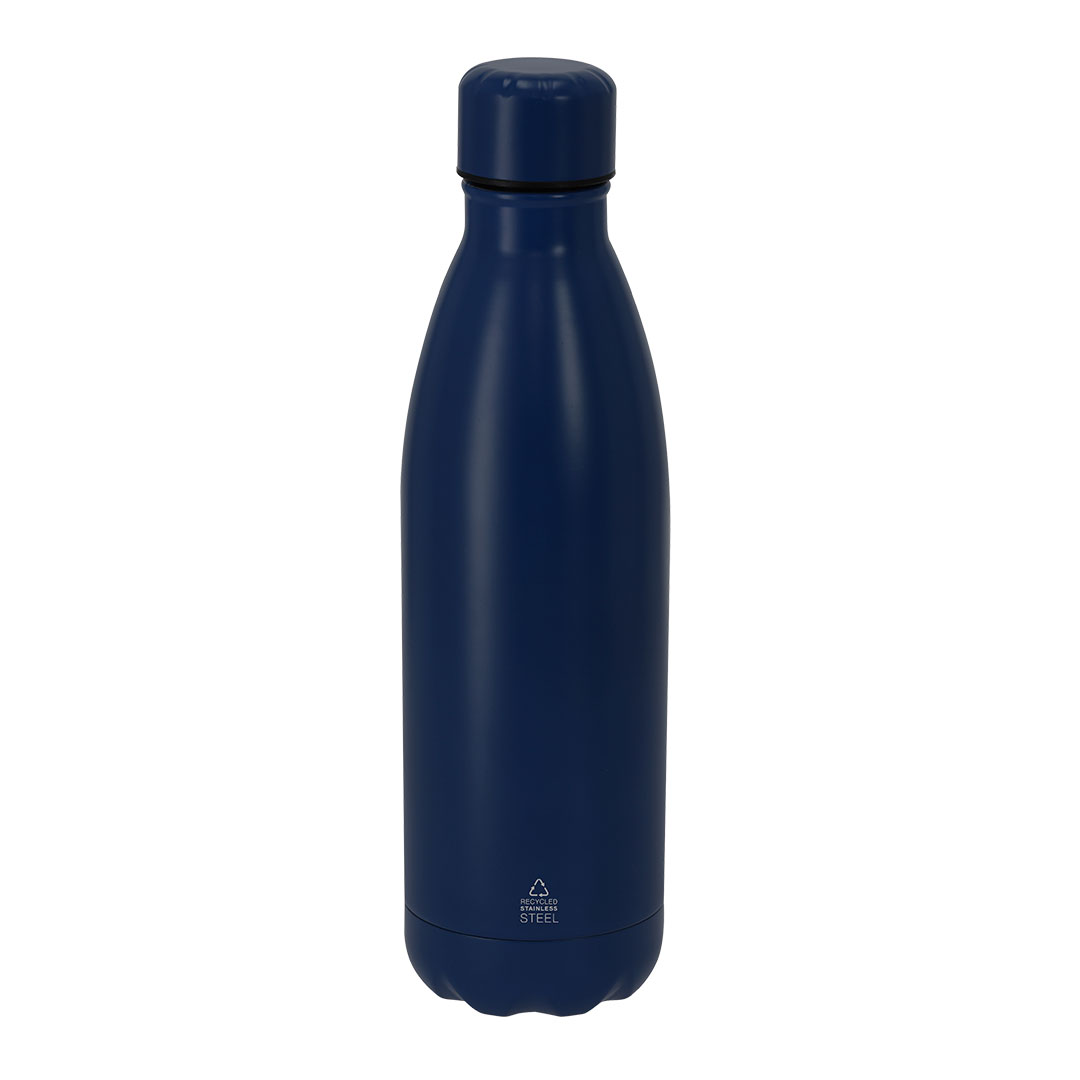 Bidón térmico de 500 ml de capacidad, fabricado en acero inox reciclado de doble pared. Su diseño combina cuerpo con tapón a rosca en color a juego con acabado mate. Libre de BPA. Incluye distintivo de acero inox reciclado.