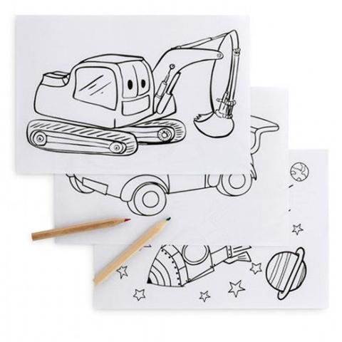 Set de 6 lápices de colores con 30 hojas para colorear.