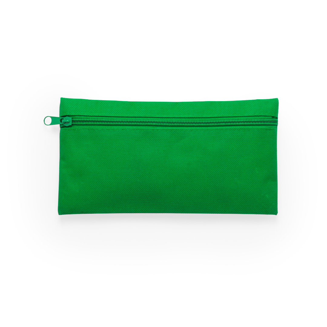 Estuche de cremallera frontal en resistente poliéster 600D de vivos colores. Con cremallera a juego.