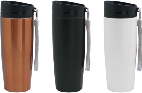 Ø 6 x 19,5 cm. Capacidad 350 ml. Acero inoxidable. Mug doble pared Interior acero 304 y exterior acero 201. Tapa a rosca, botón para abrir y cerrar. Lazo para sujetar en la muñeca. Base antideslizante. Mantiene las bebidas frías o calientes por más tiempo. Presentación en caja de regalo.