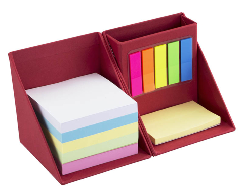 Cotizar variantesMemo set Ecológico retráctil con forma de Cubo en Cartón. Incluye 500 hojas de notas cuadradas de colores, 50 notas adhesivas amarillas medianas, 125 banderitas adhesivas de colores y un compartimento porta-lápices.