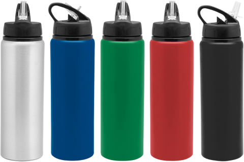 Clásica e Ideal para cualquier ocasión.Botella de aluminio con manija de agarre en la tapa, sorbete plástico y boquilla rebatible. Tapa a rosca de plástico. Medidas: Ø 7 x 25 cm. Capacidad: 800 ml. Materiales: Aluminio y plástico Polipropileno, Poliestireno y Polietileno. Presentación: en caja de regalo Kraft.